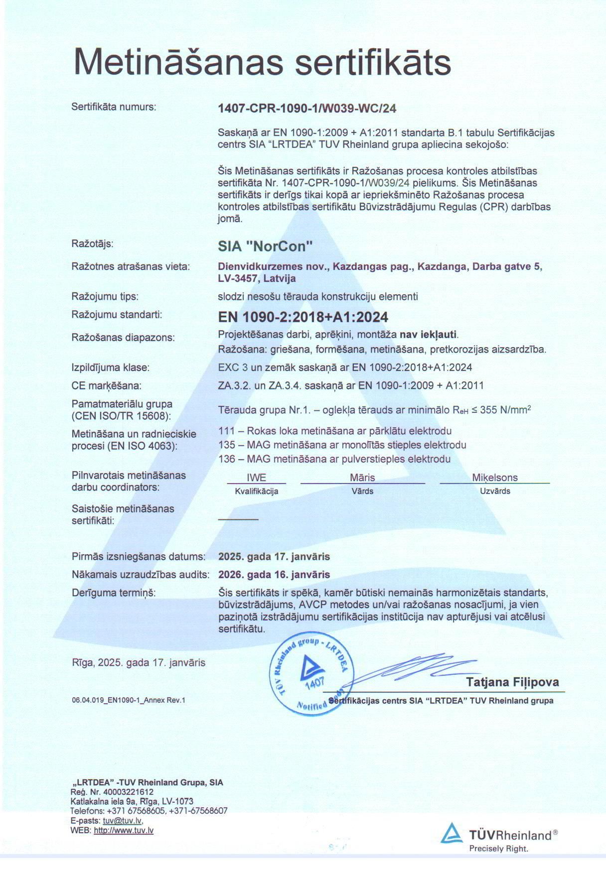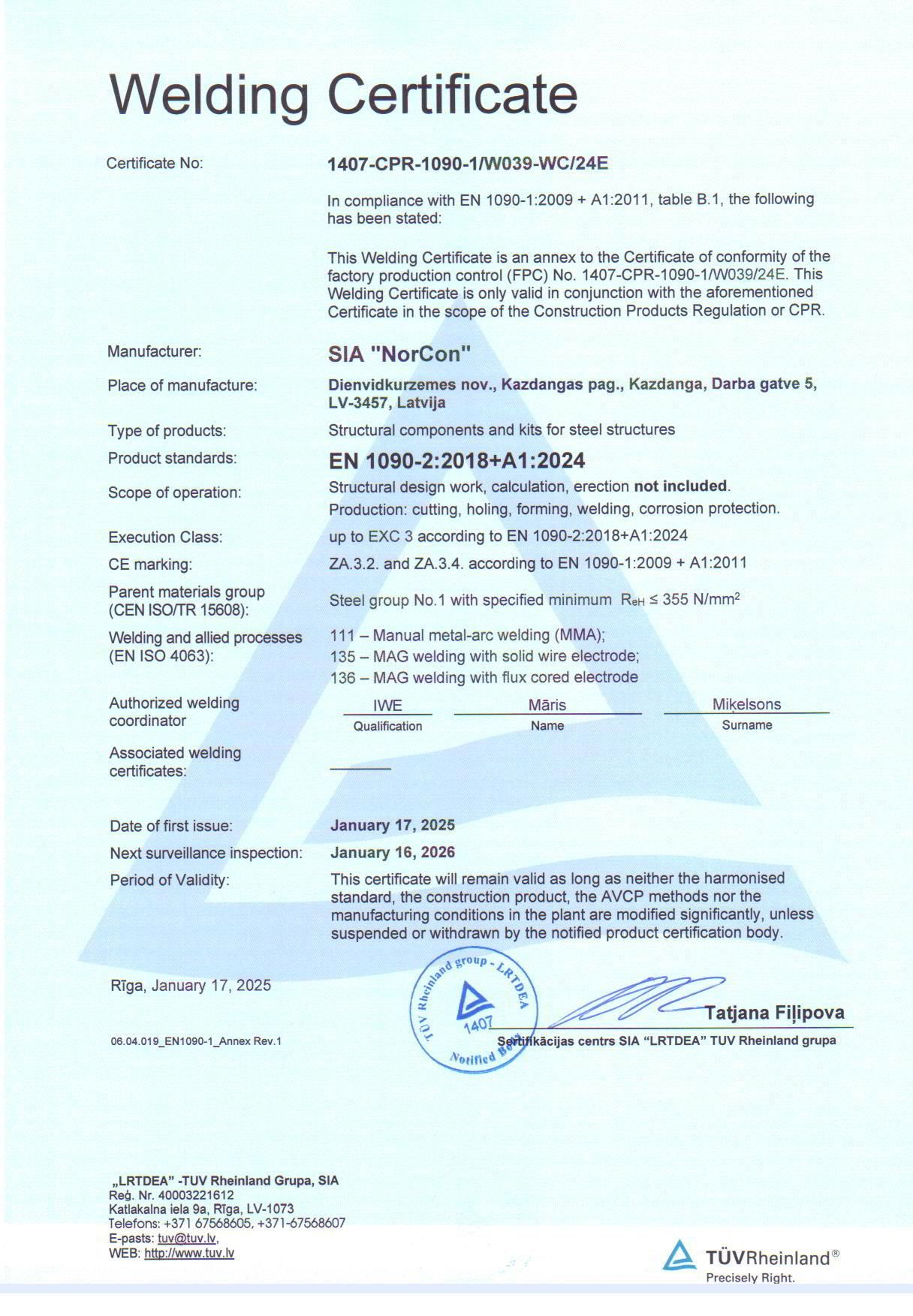 Based on EN 1090, up to EXC3